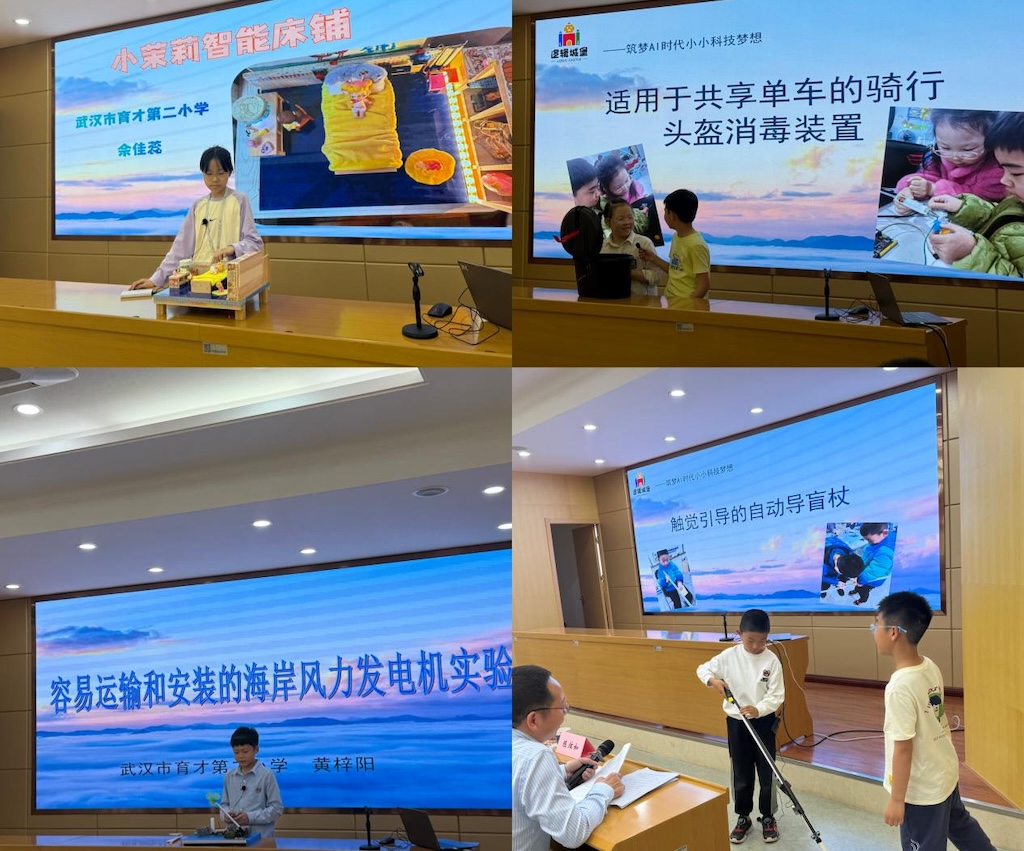 当日下午,集聚区还举办了青少年人工智能作品路演。来自武汉育才二小、武昌区中山路小学等10所学校的少年创客团队,带着他们的7项发明成果闪亮登场。有通过超声波传感器与震动反馈系统为视障人士提供精准导航的《触觉引导自动导盲杖》、有运用AI视觉算法实时监测用眼距离的《便携式防近视智能眼镜夹》,还有通过多种传感器主动监测识别实现辅助入睡的《使用白噪音的雨天模拟助眠系统》。