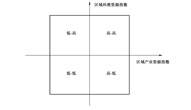 图1 区域科教资源指数和区域产业资源指数的四象限图