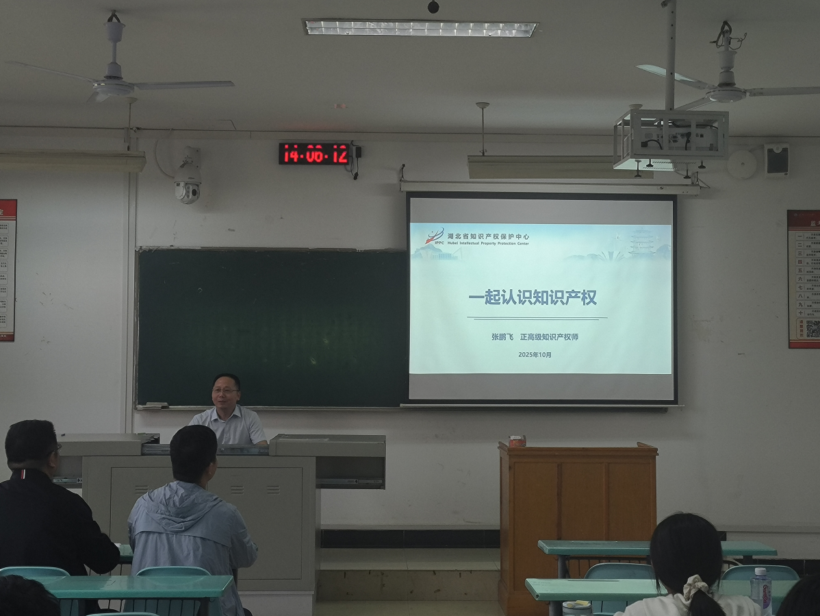 近日,为推动知识产权教育与人才培养,深化知识产权产教融合,湖北省知识产权保护中心(以下简称“湖北保护中心”)主任、正高级知识产师张鹏飞应邀走进武汉工程大学校园,为知识产权本科专业学生讲授《知识产权文献检索与应用》系列课程第一课。